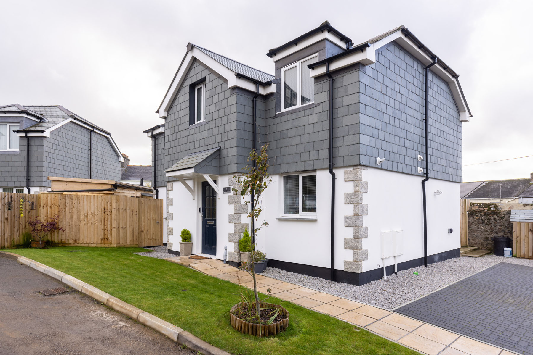 Claremont Vean is high quality development of 6 3-4 bedroom homes built in the heart of the south west . They are two-storey detached dwellings within a gated complex, each with private gardens and off road private parking. We took over the project and completed the building regulations along with getting further planning permission for an additional 3 bed dwelling. We also submitted planning permission for adding additional garages to the properties. The client wanted homes that were in keeping with the character of the site as well as homes that stood out. Construction began on site in 2020.