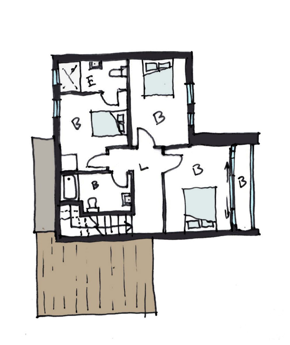 We were instructed to design a one off bespoke design for a client looking to build on her neighbouring plot of land. We were given a brief to design a dwelling that catered for her growing family which was future proof, allowing the dwelling to be adapted over the lifespan of the client and their family