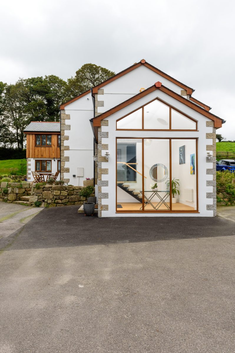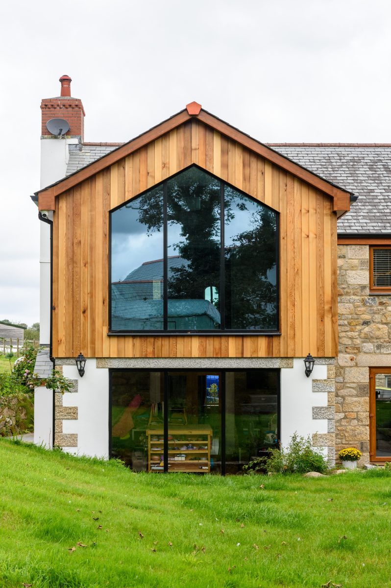 Vogue Farm is a Farmhouse set in the tranquil suburbs of St Day. This property underwent complete rebuild in recent years to match the existing Farmhouse. While the rebuild was exquisitely undertaken it lacked a clear focal point and entrance. Part of the brief was to create two separate extensions to the property to provide two completely different elements. Firstly to provide increased living space and secondly to create a new entrance. While the extensions are totally separate both in distance and size it was important to create both spaces to add to the character of the Farmhouse as well as function for the owners.